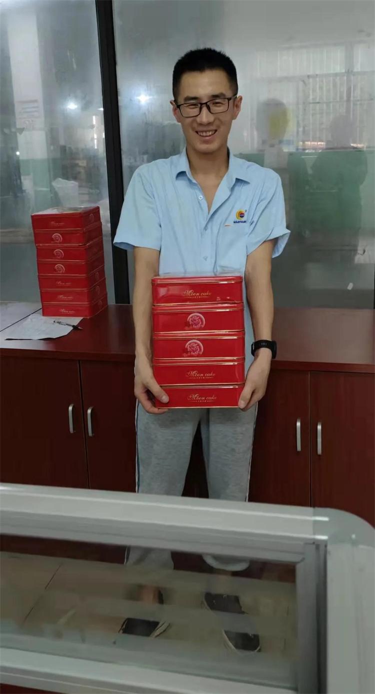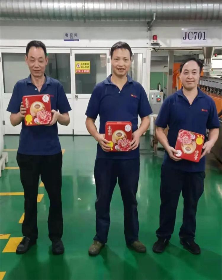 接過中秋禮物,員工臉上流露出幸福的笑容,不僅能吃到象征著團結友愛、幸福美滿的中秋月餅,還能感受到企業濃濃的關懷,內心感到特別幸福。
