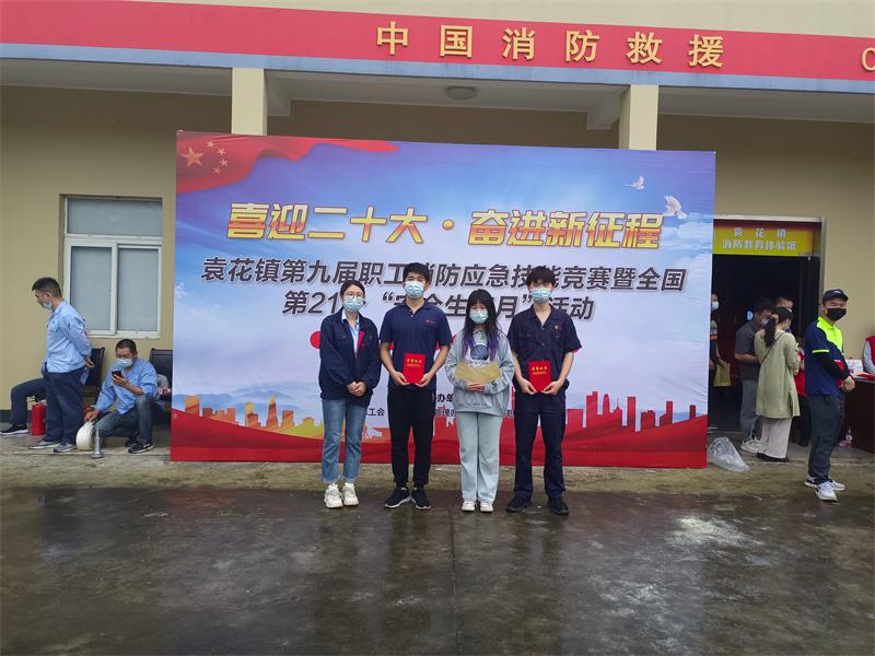 經過緊張激烈的角逐,浙江金彩新材料有限公司參賽隊榮獲袁花鎮第九屆職工消防應急技能競賽30米男女混雙滅油火操比賽第二名,袁花鎮第九屆職工消防應急技能競賽被困人員極速救援操比賽第四名。