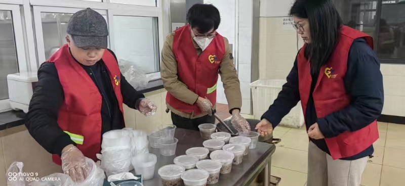 一大清早,金彩黨支部、工會就忙碌起來,熱氣騰騰的臘八粥剛剛煮好,香味充斥在空氣中,正一份一份地分裝著,把香溢滿滿的臘八粥盛在帶蓋的餐盒中。