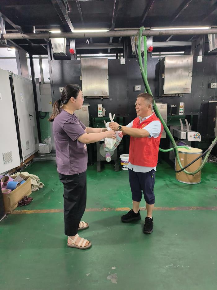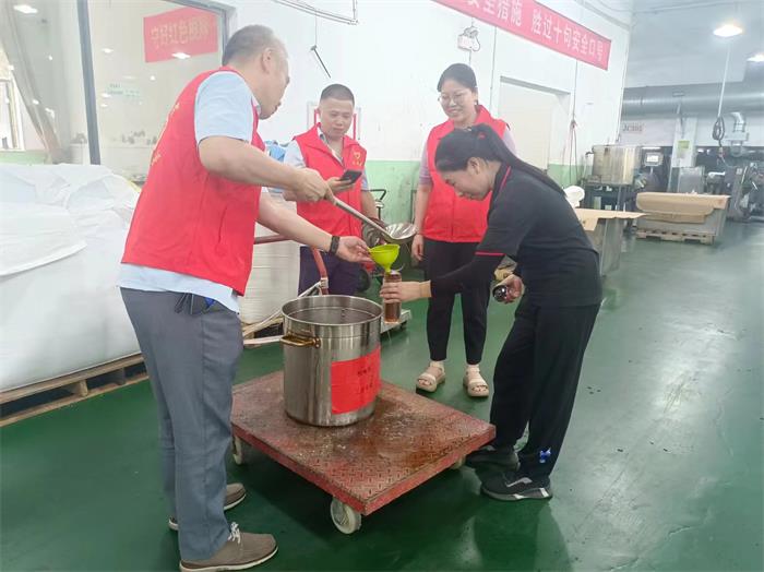 盛夏七月,熱浪襲人,為做好夏季高溫條件下員工的防暑降溫工作,切實保障公司廣大員工的身心健康,防止炎熱夏季高溫中暑,海寧市袁花鎮工會、浙江金彩新材料有限公司聯合黨支部、工會走進車間送清涼,為大家送來了綠豆湯、冷飲、鹽汽水等,并發放了夏季高溫用品,讓員工們在繁忙的工作中感受到袁花鎮工會、公司對大家真誠的關懷與關愛,并感謝大家所付出的辛勤勞動。