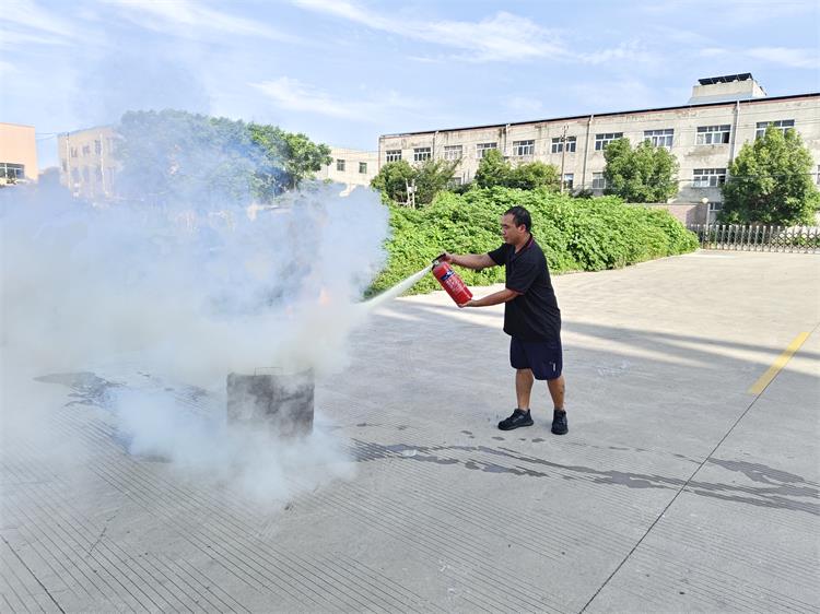 在空曠場地,教官現場演示手提式干粉滅火器 “提、拔、握、壓” 四步操作法,員工輪流上陣實操。隨著一次次噴射演練,員工們從 “緊張生澀” 到 “熟練精準”,切實掌握了滅火器的實戰技巧。